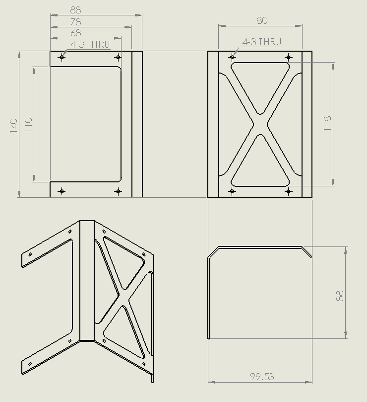 As all cansats for ARLISS have to be weighted under 1050g, we should design the satellite as light as possible. The satellite’s weight can be easily reduced by cutting off some portion of structural frames. We successfully decreased weight of the cansat up to 109g by removing relatively useless portions of the aluminum structures; the force flow is relatively low in the relatively useless portions. Moreover, we processed fillet at every corner of cut portion to preserve strength as much as possible.