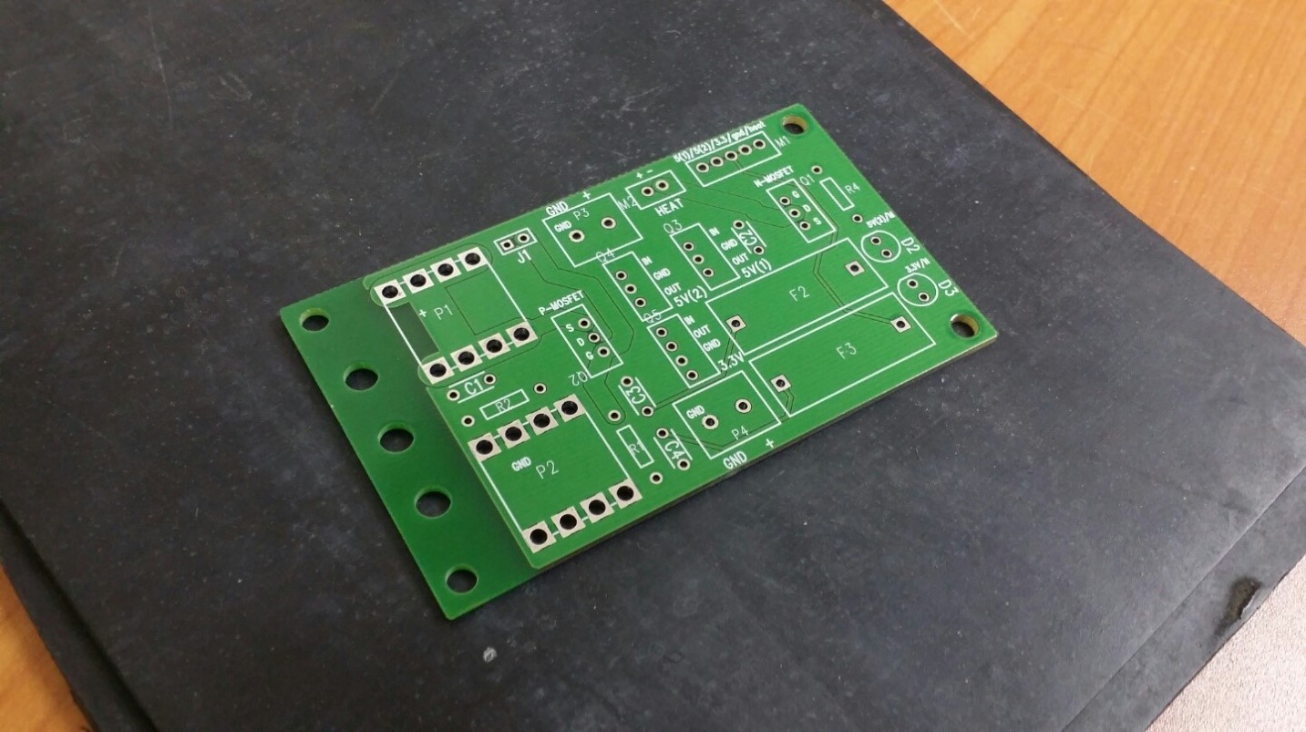 ‘①’ is each regulator’s output lines. First 5V regulator has MCU and supplies 2.2A. Also second regulator has IMU and supplies about 0.06A. 3.3V regulator has GPS and Wi-Fi module and gives about 0.4A. Each value should be considered for each output line width. Also 3A and 1A fuse is attached to each output line due to safety of latter systems.