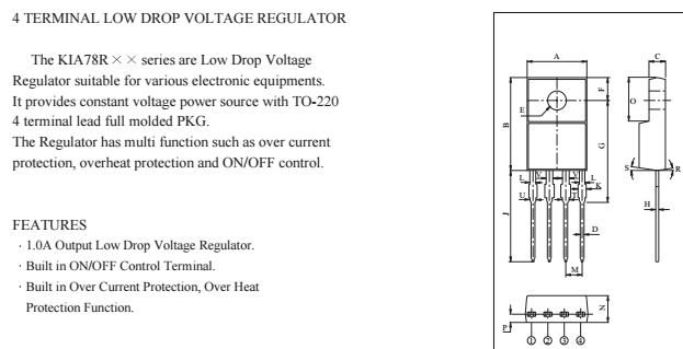 By setting marginal voltage percent as 10%, We can bound MCU, IMU, CAM for 5V ±10% and GPS, Wi-Fi for 3.3V ±10%. So we can choose 5V & 3.3V LDO. The below picture is main datasheet description of MC7805CT(5V LDO) and KIA78R33API(3.3V LDO).